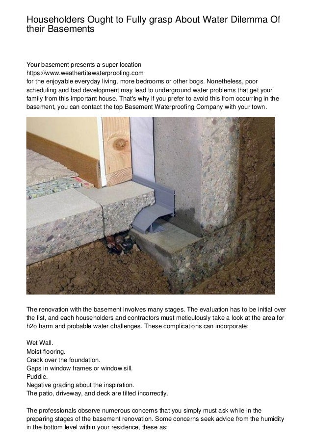 Householders Ought To Fully Grasp About Water Dilemma Of Their Baseme
