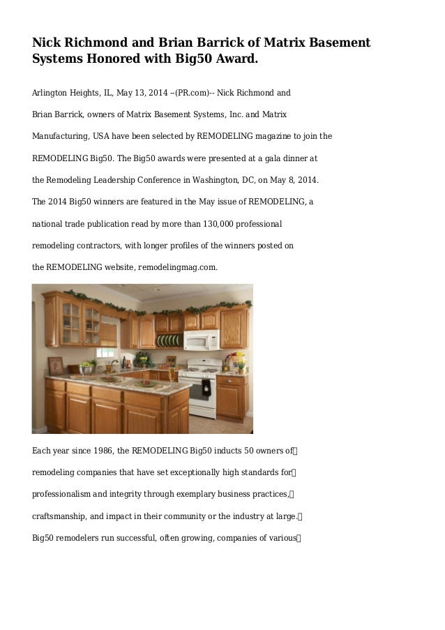 Nick Richmond And Brian Barrick Of Matrix Basement Systems Honored Wi
