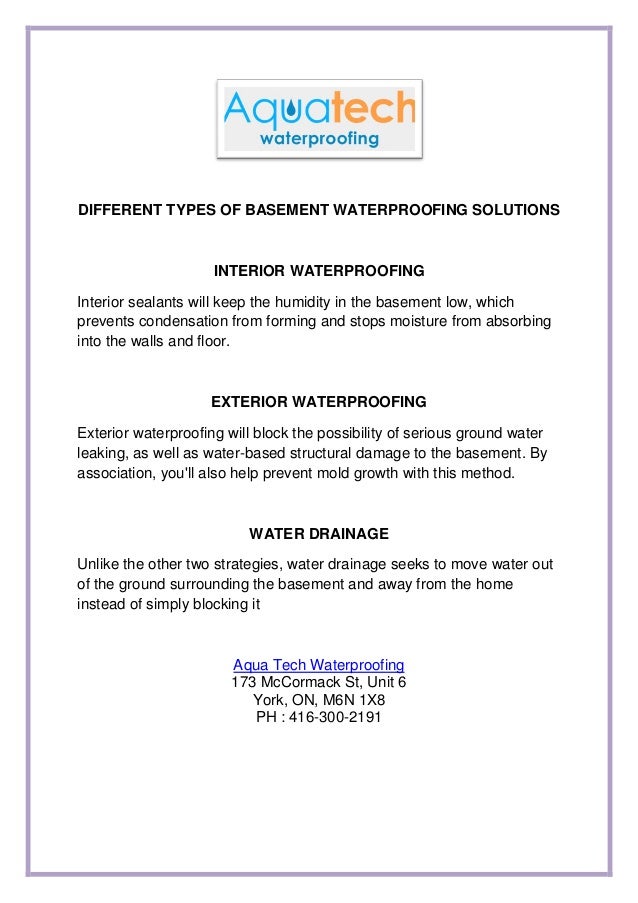 Different Types Of Basement Waterproofing Solutions