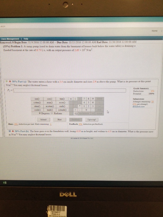Solved A Sump Pump Used To Drain Water From The Basement