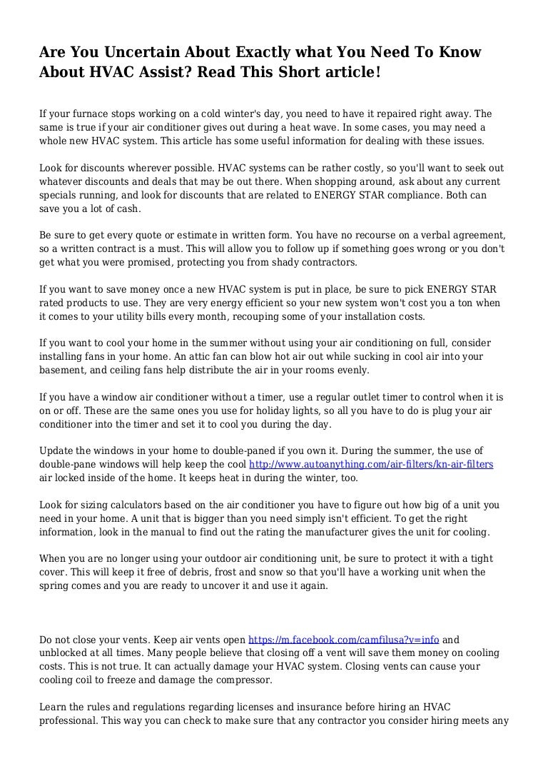 Are You Uncertain About Exactly What You Need To Know About Hvac Assi