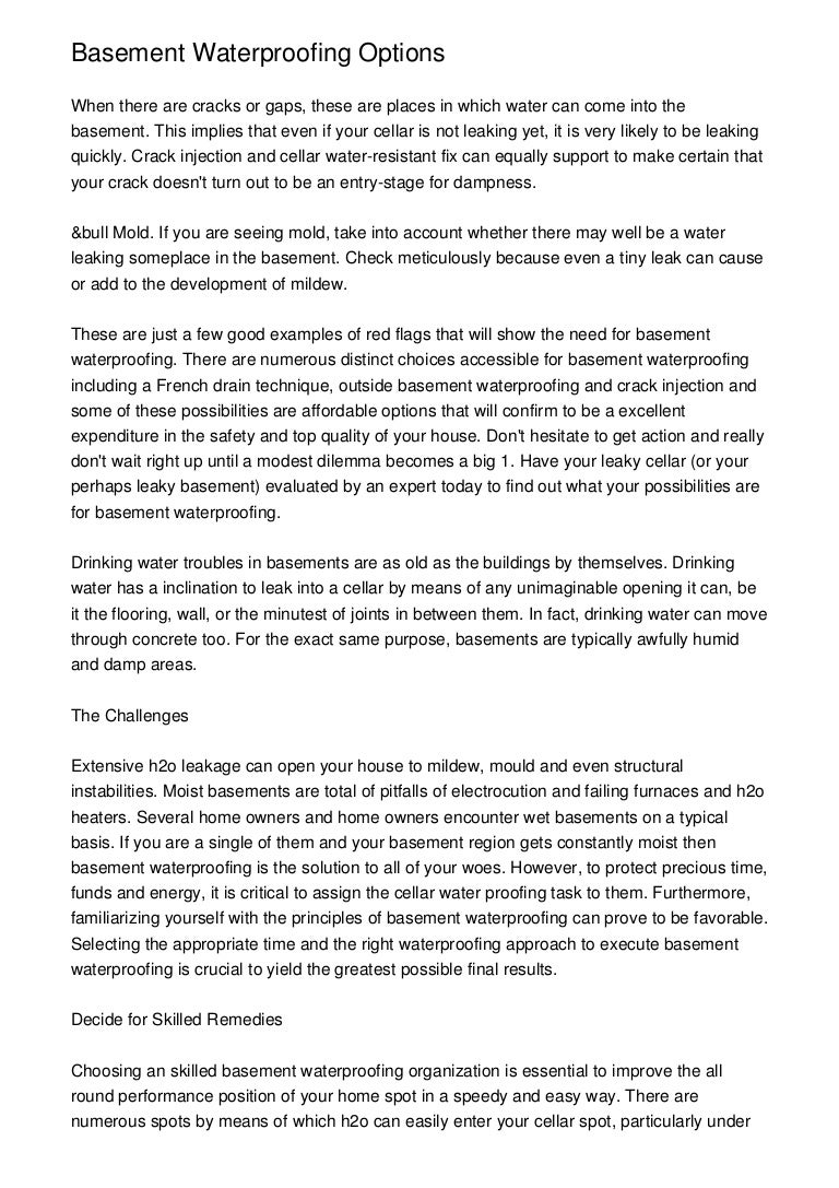 Basement Waterproofing Options