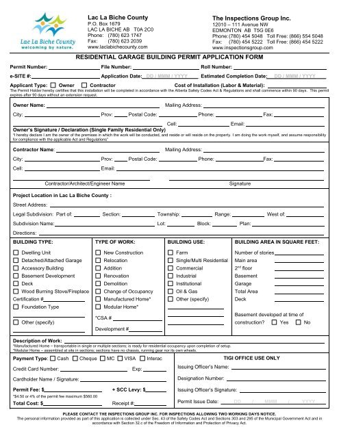 Residential Garage Building Permit Form Lac La Biche County