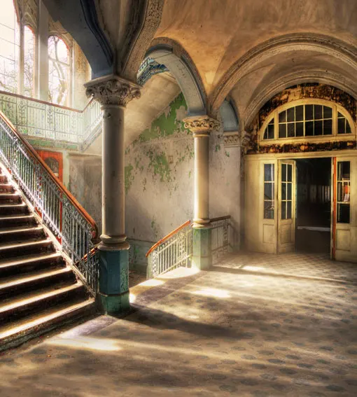 10x10ft Basement Cellar Antique Arch Door Sunshine Wooden Stairs