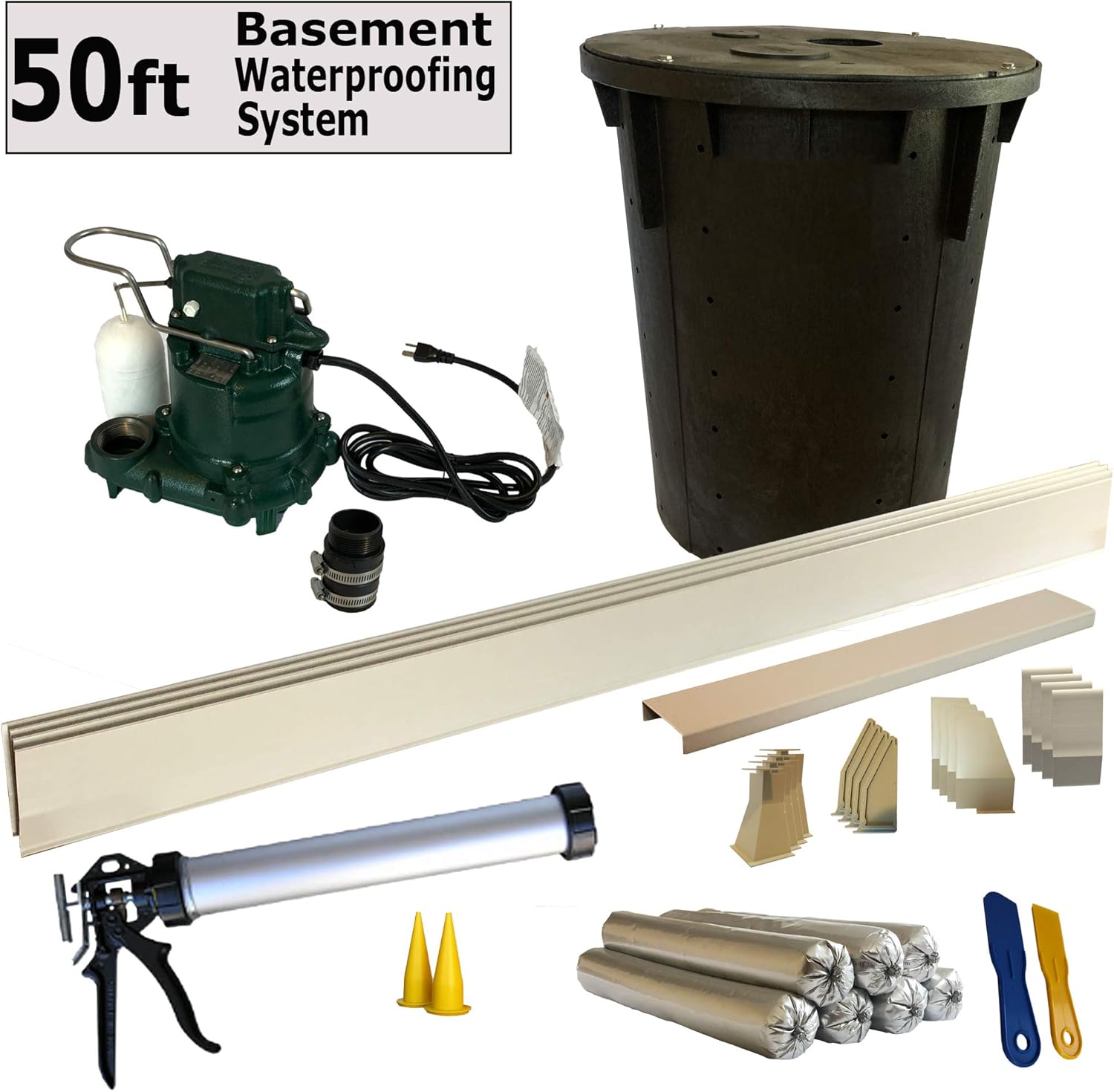 50 Ft Complete Basement Waterproofing System Includes